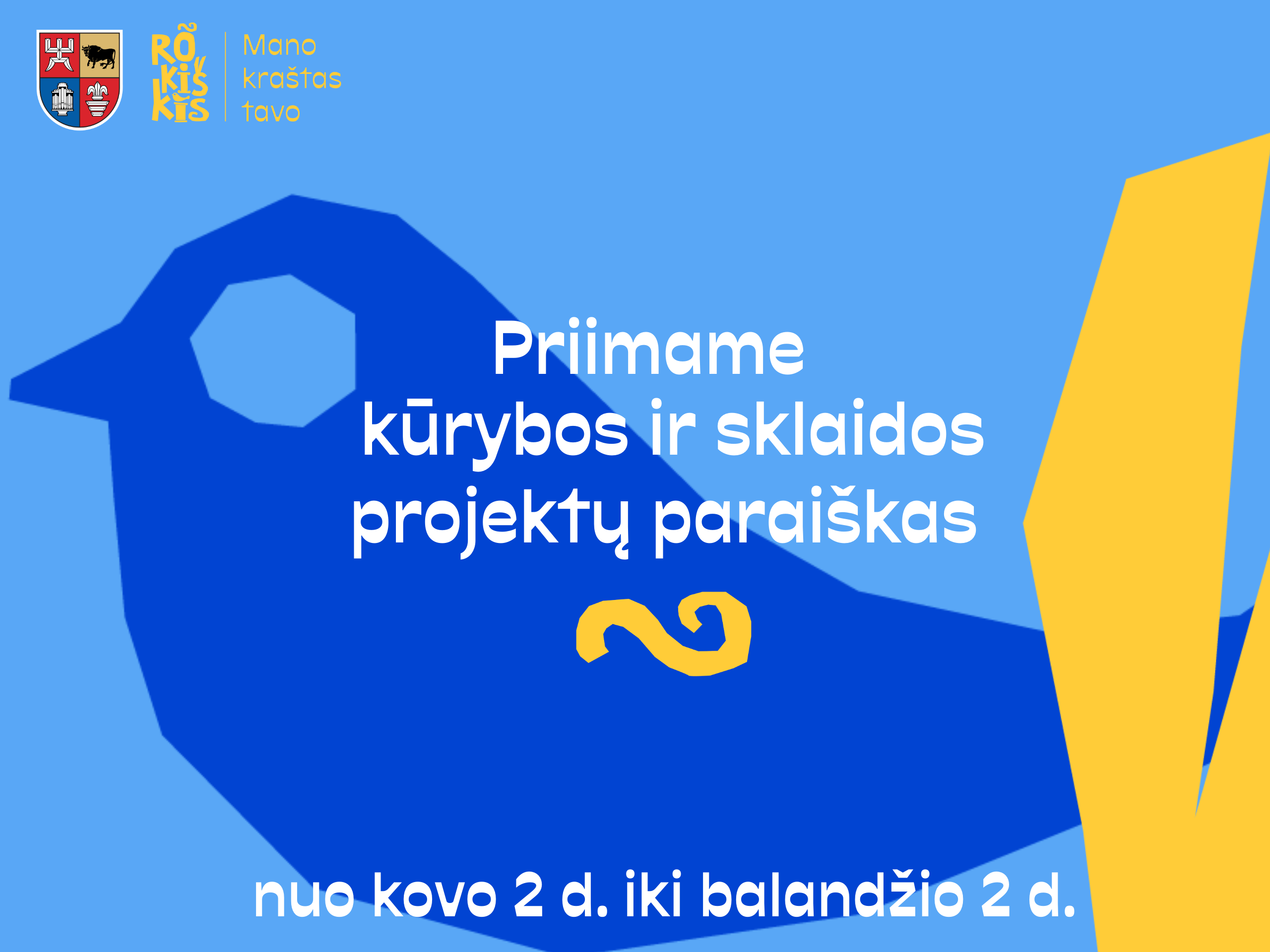 Rokiškio rajono savivaldybė nuo 2026 m. kovo 2 d. iki balandžio 2 d. priima konkursines paraiškas kūrybos ir sklaidos projektų finansavimui.