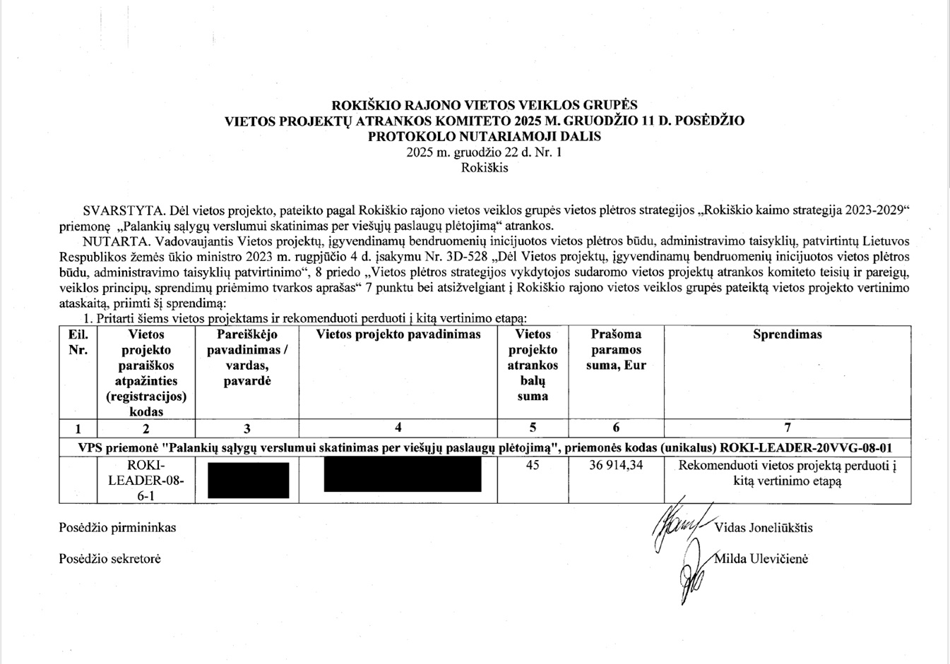 | Priemonė "Palankių sąlygų verslumui skatinimas per viešųjų paslaugų plėtojimą", kodas ROKI-LEADER-20VVG-08-01 | Kvietimas Nr. 6 |